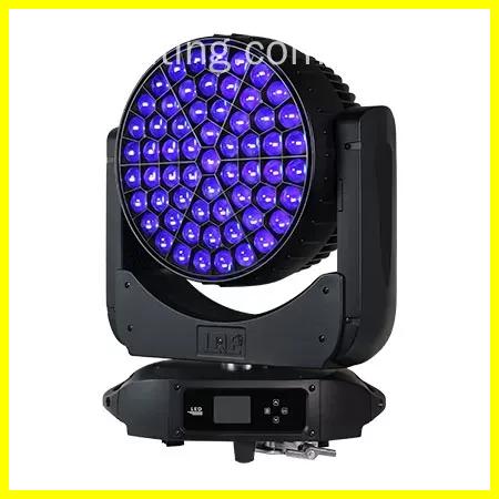1000W 61x40W LED RGBW Mulichips Moving Head Wash Lights with Zoom (5°–50°), Covering Large Range and Long Distance. Designed to deliver a 5°–50° ultra-large zoom range to achieve a greater wash effect, illuminating stages and events with stunning lighting effects.